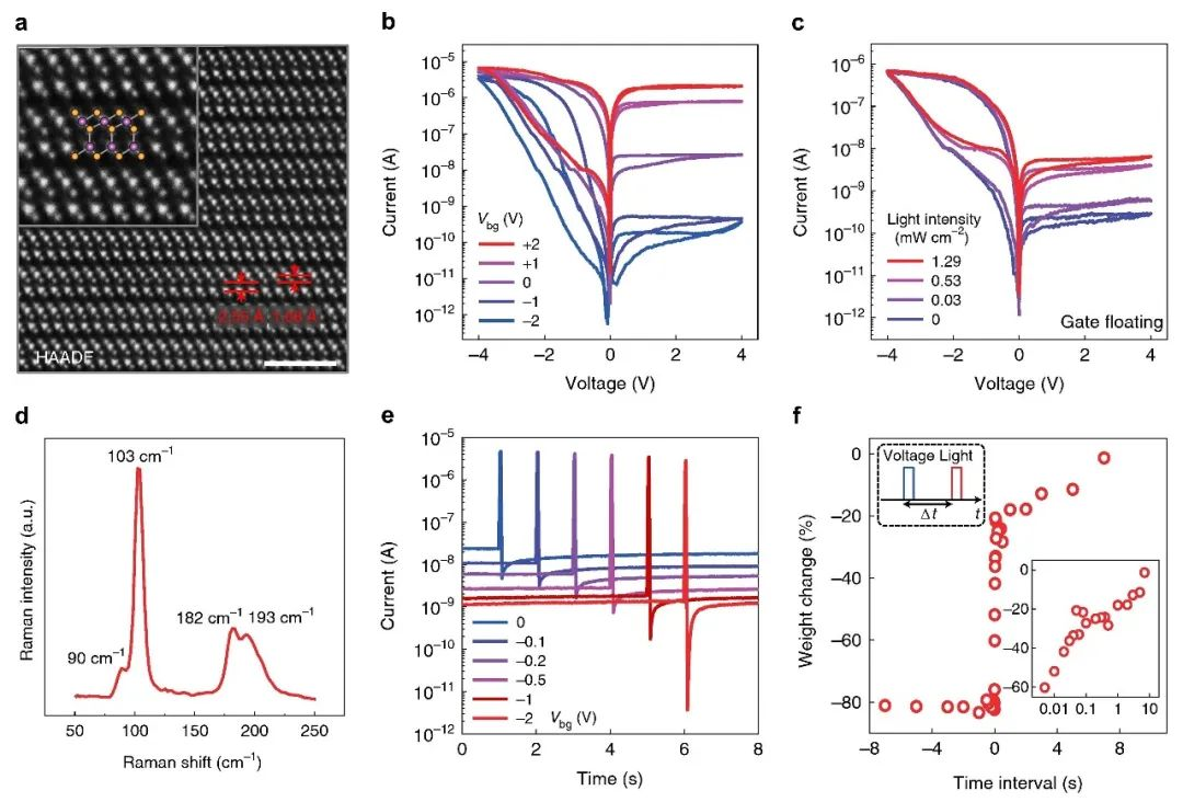 图2. 具有丰富突触特性的α-In2Se3光电忆阻