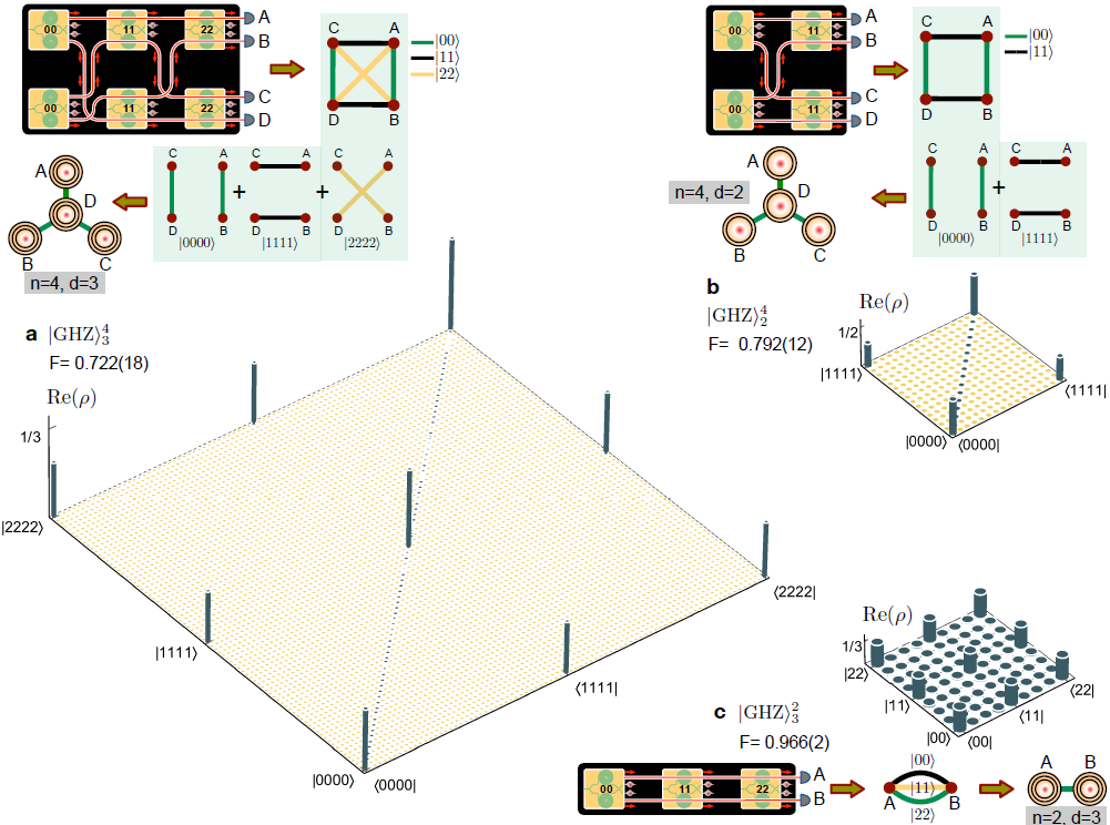 图2图论光量子芯片上的多光子、高维度纠缠态制备与真纠缠验证
