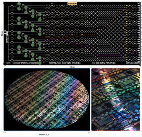 北京大学课题组与中国科学院、浙江大学、丹麦科技大学、英国布里斯托尔大学和澳大利亚西澳大学合作,经过6年的联合攻关,突破了大规模光量子芯片设计、加工、调控和实验测量的重重困难,发展出了基于互补金属氧化物半导体工艺(CMOS)的晶圆级大规模集成硅基光量子芯片制备技术和量子调控方法,实现了一款集成约2500个元器件的超大规模光量子芯片,实现了基于图论的光量子计算和信息处理功能,包括面向通用型量子计算的多光子高维量子纠缠制备,以可编程玻色取样专用型量子计算。该图论光量子芯片,实现了量子芯片与复数图的完全一一对应,图的边对应关联光子对源,图的顶点对应光子源到探测器的路径,芯片输出多重光子计数对应于图的完美匹配。通过编程该图论光量子芯片可任意重构八顶点无向复图,并执行与图对应的量子信息处理和量子计算任务。