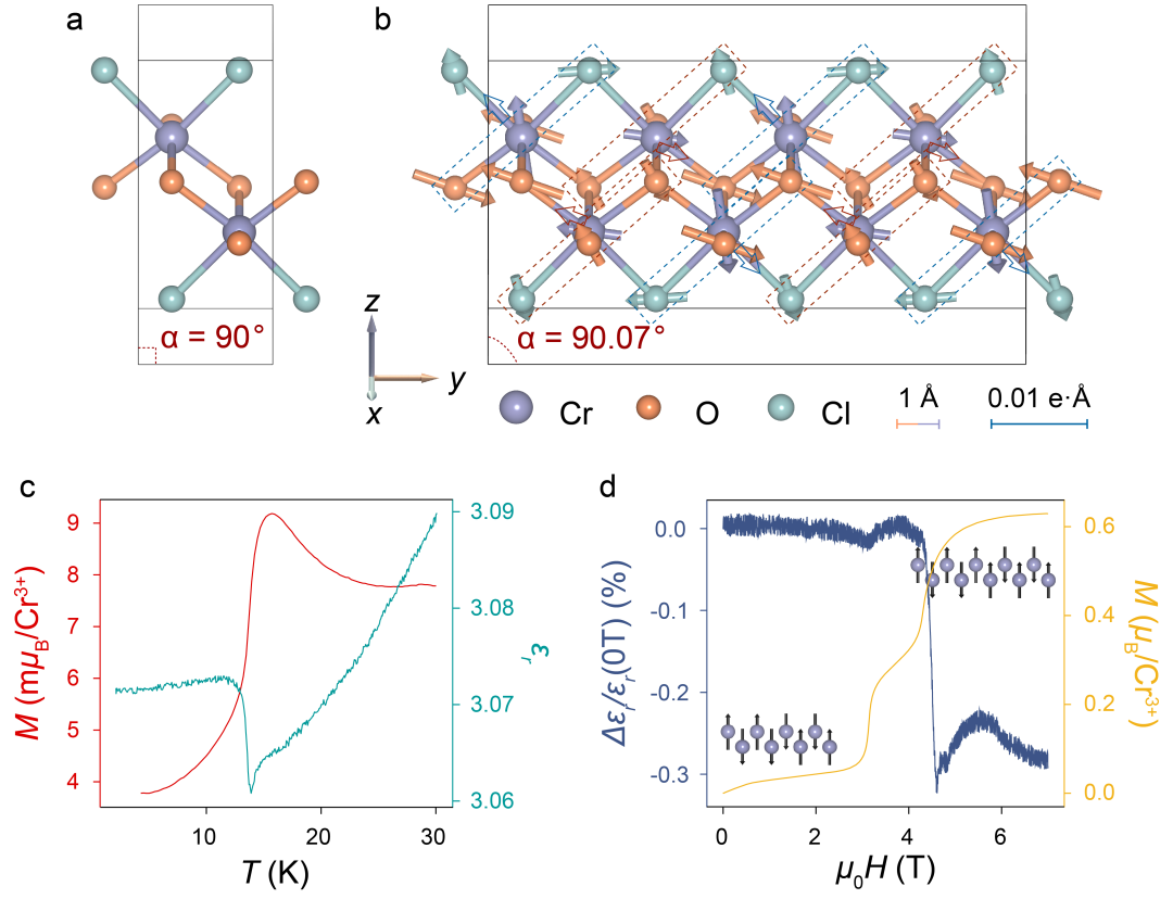 图一:CrOCl磁性诱导的反铁电相变