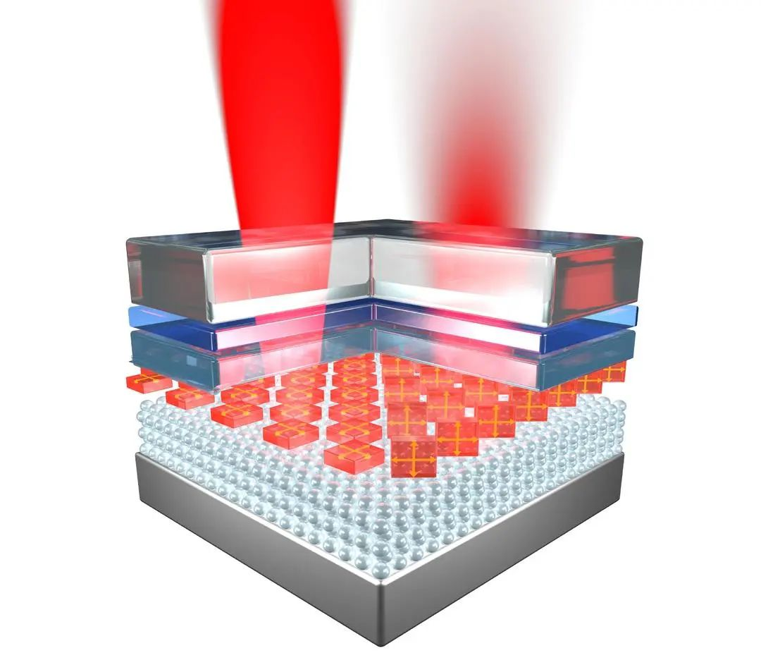基于纳米晶的发光二极管具有低成本、高发射效率、窄光谱、长寿命等优点,因而在下一代高清显示技术与照明应用中均具有巨大潜力。此前,纳米晶-发光二极管领域已取得了重大进展,展现了接近30%的高外量子效率和超过10,000小时的寿命。然而,器件中外量子效率的进一步提升受到了外耦合因子的限制,这是决定器件最大光提取效率的关键参数。各项同性纳米晶的垂直跃迁偶极矩动量因与金属电极产生较强的耦合并以等离激元模式损失了大部分能量。因此,提高水平跃迁偶极矩动量分布一直被认为是提升外量子效率的重要方法,图1。