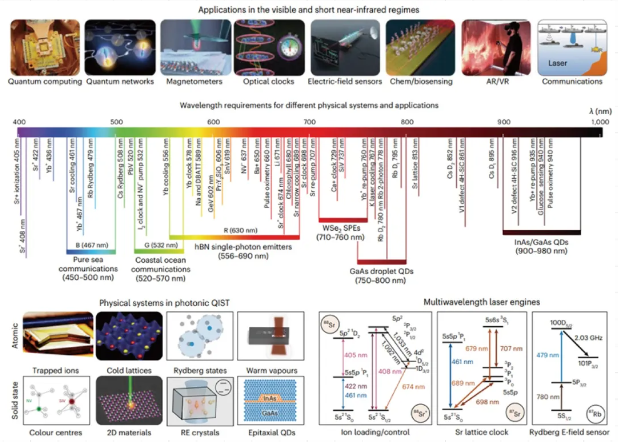 400-1000nm激光器应用及物理体系示意图