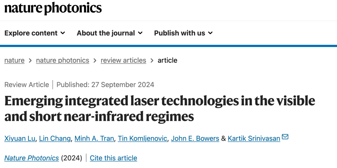 近日,中心常林研究员与合作者受邀在国际知名期刊《自然·光子学》(Nature Photonics)上发表了题为”Emerging integrated laser technologies in the visible and short near-infrared regimes”的综述文章,为芯片化的短波集成激光器技术进行了总结与展望。美国国家标准与技术研究院卢溪源研究员与北京大学电子学院常林研究员为共同第一作者,美国国家标准与技术研究院Kartik Srinivasan研究员为通讯作者。