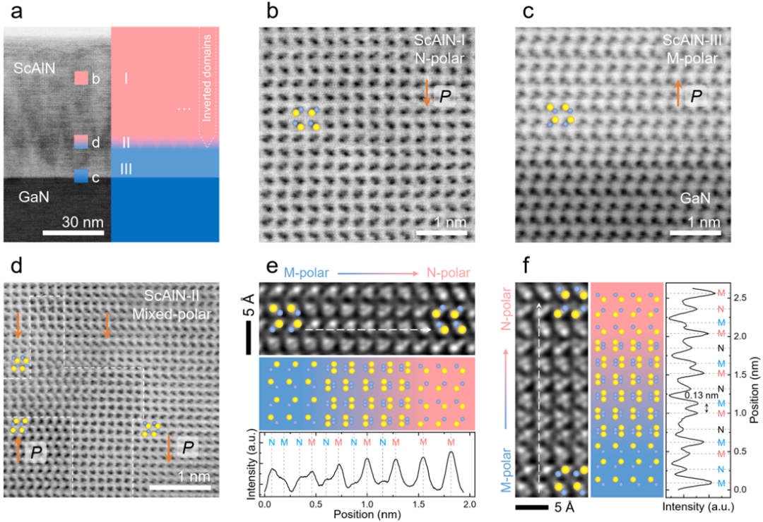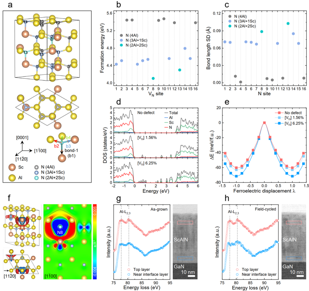 图3. 铁电ScAlN的界面极化调控失效层及其微观结构。