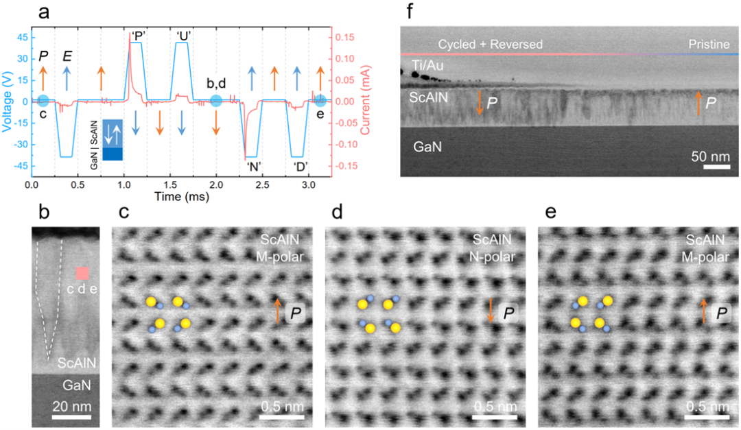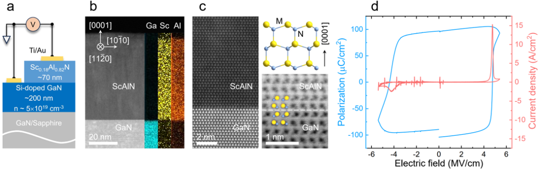 图1. 分子束外延生长的单晶铁电ScAlN/GaN异质结。